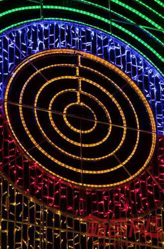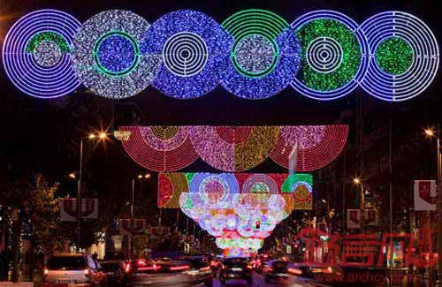 设计师运用了LED节能灯,形成每个环形的独特图案和色彩组合。尽管项目看上去颇有难度,不过设计师认为这是运用彩色几何设计、活跃街景的好机会。诚如她的期盼,以往黯淡寒冷的Serrano街成为了温暖悦动的世界。