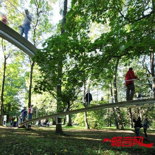 “在这个郁郁葱葱的Kadriorg森林里,我们架起了一座蜿蜒的天桥。