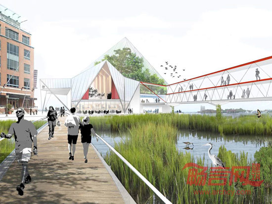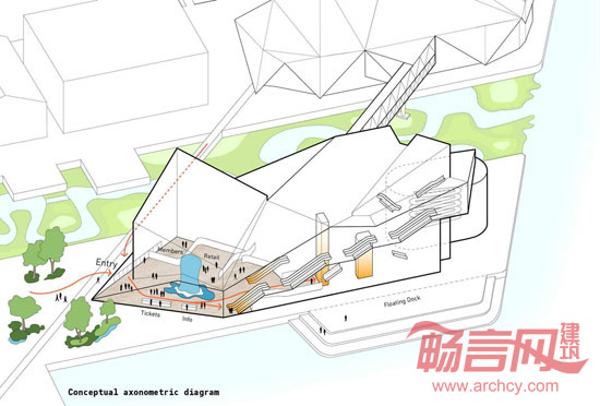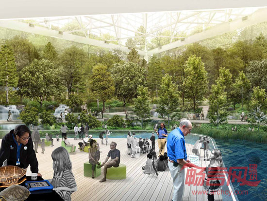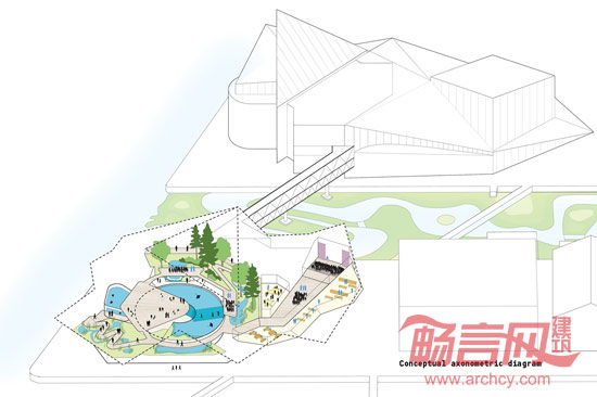 整体规划占地33500平方米,通过建立一个3500平方米的城区湿地,将水族馆打造成和谐共生的场所。通过为游客和公众提供户外教育和社会活动场所,该方案一方面可以改善当地生态,还可以营造出水族园区的效果,增强水族馆与城市的联系,并且增加水族馆在自然保护方面的作用。