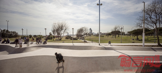 SCOB建筑事务所设计了巴塞罗那的三个溜冰场公园。这三个项目分别位于Poble Nou,Les Corts和Nou Barris区。项目的不同之处在于其位置,此前巴塞罗那的溜冰场大多设在市郊。本项目结合了旱冰运动和城市空间功能。设计目标集融合体育、公园和广场于一体。公园将不同背景的人们聚合起来,鼓励社会交流,并让孩子发展对于溜冰的兴趣。混凝土材质的洼地和坡道与公园景观无缝式连接,让两个公共休闲空间相互作用。