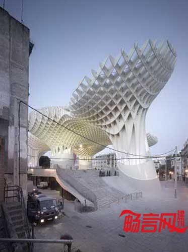 巨大菌类结构的Metropol Parasol公园包括一个考古博物馆、农产品市场、高架广场、若干酒吧和餐厅以及“阳伞”顶部的观景阳台。轻质金属伞状结构将考古挖掘场地转化成了当代城市地标。立柱成为了进入博物馆、广场和观景台的显眼入口,在历史和现代城市间构建起特殊联系。Metropol Parasols公园的混合气质给塞维利亚中心区域的文化、贸易发展注入了动力。