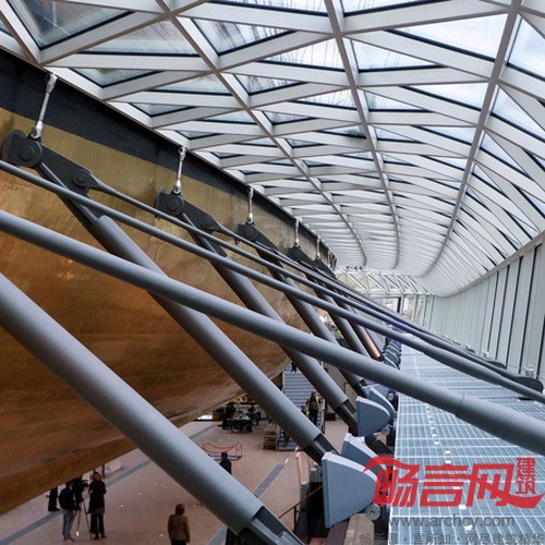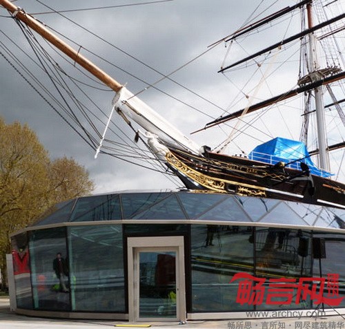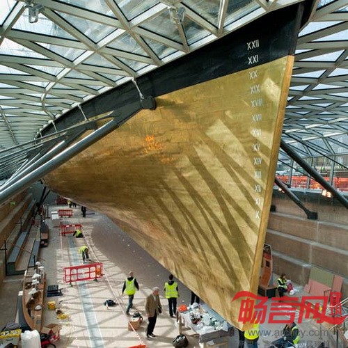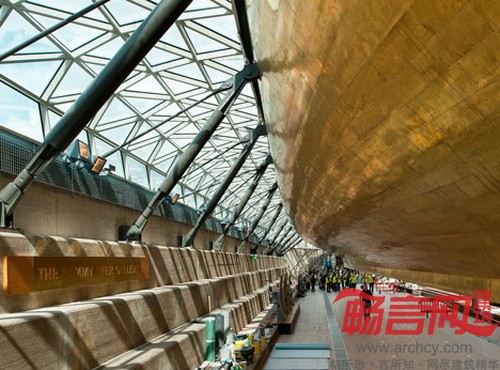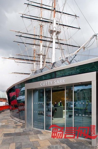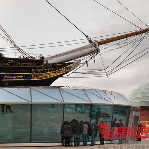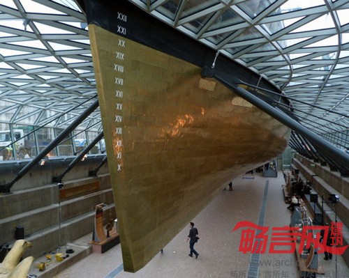 自从2006年在一场火灾中受损后,Cutty Sark就暂停了对公众开放。随后,伦敦建筑设计公司Grimshaw对这艘船的甲板和船帆进行了全面的修缮。船体被抬离地面3米,由钢架和玻璃板构成的顶棚一端建在地面上,另一端则与船体衔接,这样就打造出了一个环绕船体的地下展厅。