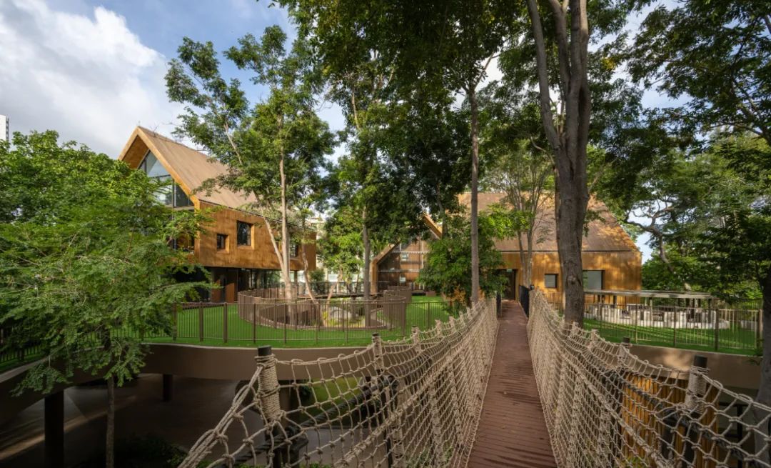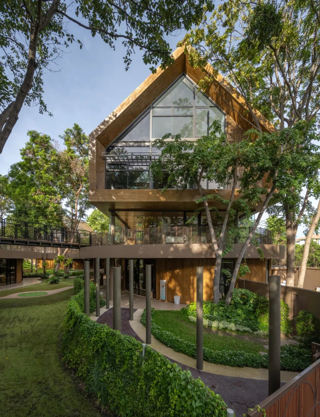 Lovell 国际学校是位于泰国芭堤雅的一所国际幼儿园,是一个可以让孩子们在树丛中玩耍和学习的地方。项目所在地植物繁茂,绿树成荫。客户与设计师的主要意图是保留场地上的大部分植物,为新的学校留出一处林荫之地。