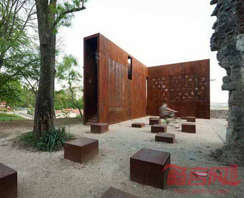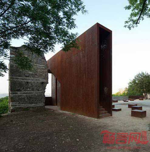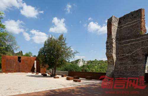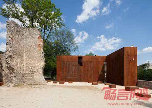 匈牙利建筑事务所MARP将一处文艺复兴时期宫殿遗址改造成耐候钢瞭望点。