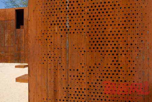 建筑师Marton Devenyi介绍道,“我们选取耐候钢作为项目的主材,目的是使新景观建筑与现有部分产生明显的差别。古旧结构年代太久,现已非常残缺,我们不想重修,想要维持它们现有的样貌。”