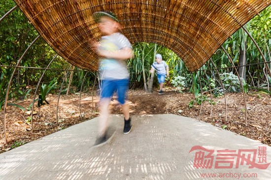 为了给游客带来独特的动物园体验,设计师采取了沉浸式的户外游览室设计方案,其中包括一个‘入场通道’和多个树屋结构的游览室,均采用藤条编制而成。其中树屋结构为主要部分,每个树屋结构包括多个几何形状的舱室,建在黑色结构钢框架上。