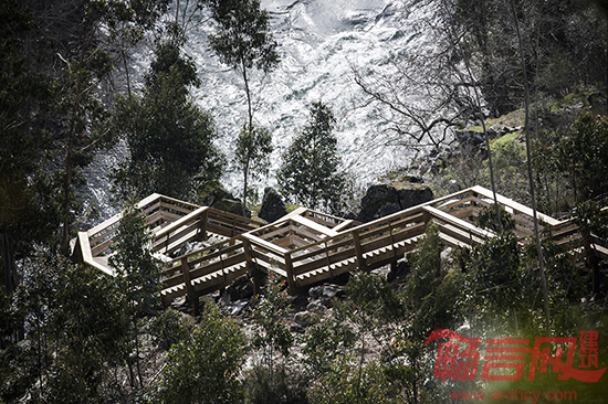 这并不是一条普通的走廊那么简单。设计过程中,尽可能地减少了走廊建筑对周围环境的影响。阶梯盘山而上,人们可以从山顶将周围景色尽收眼底。一条很窄的木桥横跨派瓦河,周围是陡峭的崖壁和郁郁葱葱的植物。整条走廊依地势而建,中间设有许多休息站和观景台。