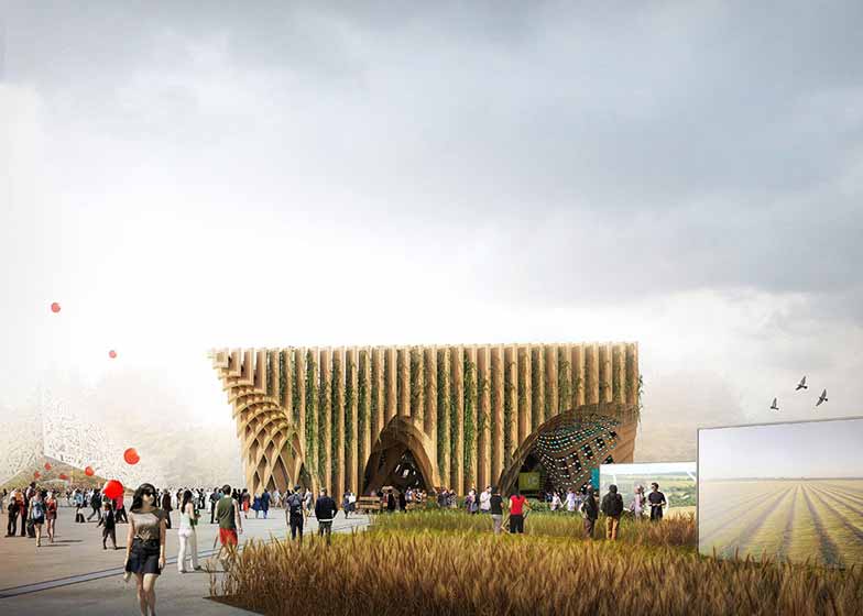 XTU Architects建筑事务所设计米兰2015年世博会法国馆方案,回应了世博会“滋养地球”的主题。该方案构想出一座围绕生产农产品的集市大厅而建造的建筑。设计师表示,“项目重新诠释了市场模式,过去市场是商品交换发生的场所,未来的市场将同时用于生产与销售。”项目采用数字制造科技,多层次的木原料创造出山脊状结构。弧形中空区域为室内空间,设计师希望啤酒花植物能够顺着格栅向上生长。