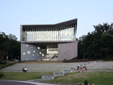 项目坐落于首尔Baehong山麓,四周是户外栈板和小池塘,是瞭望首尔大学校区全景的绝佳地点。为了符合音乐学院要求,礼堂和排练厅设在一层。中庭位于一层中央,从而将山景引入项目中。阶梯中庭通向音乐厅,其弧形墙面有助于游客去往不同楼层。石柱廊的设计参考周边环境常见的橡木元素,游客可以间接地感受置身森林的体验。