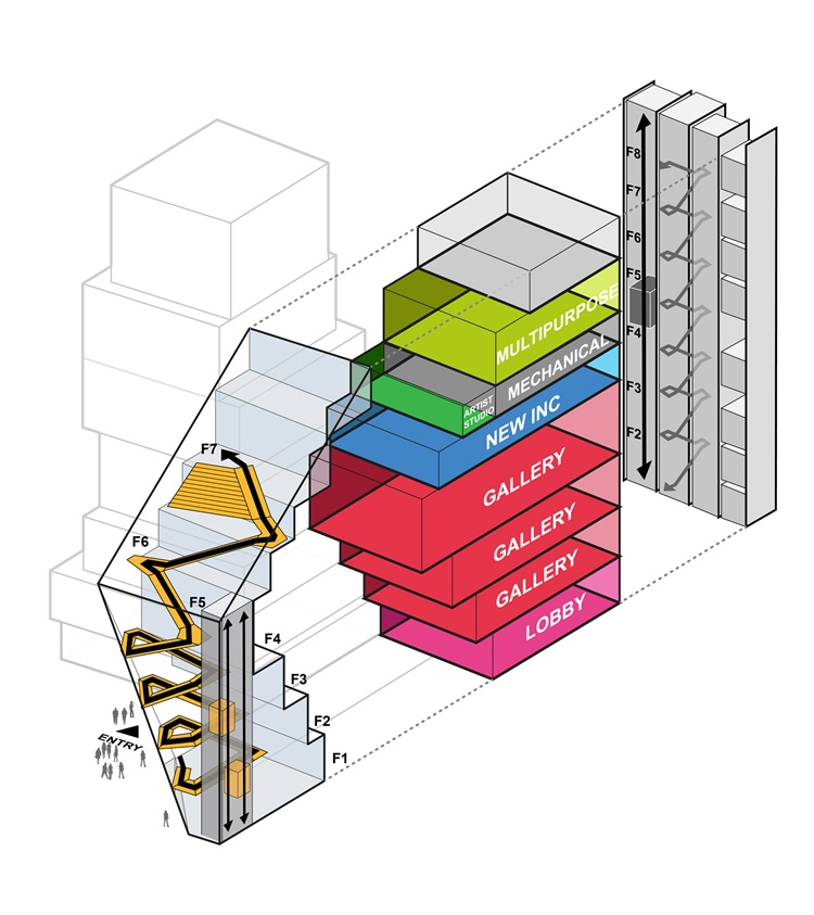 OMA纽约分公司公布了日本SANAA事务所设计的博物馆增建方案。妹岛和世、西泽立卫创建的SANAA事务所在2007年完成了下曼哈顿的当代艺术馆设计。此次OMA的扩建将使使用面积增加一倍。扩建部分外观棱角分明,面积达5570平米,包括4645平米的展区,提升了博物馆交通动线,并营造了更多的教育和文化功能。新建建筑外层带有彩色玻璃和金属网,赋有当代特性,并同SANAA设计的已有建筑营造差别干,涵盖不规则的堆叠结构,后者同样被金属网覆盖。