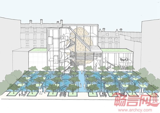 Reinventer Paris是由巴黎市长Anne Hidalgo发起的建筑规划项目,旨在为法国首都开发创新型的城区项目。项目邀请了众多设计事务所提交设计理念,再由国际专家小组进行评选。作为参赛环节的一部分,日本坂茂事务所提交了关于巴黎第4郡内某一地块的设计方案。