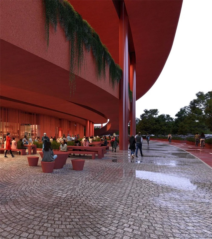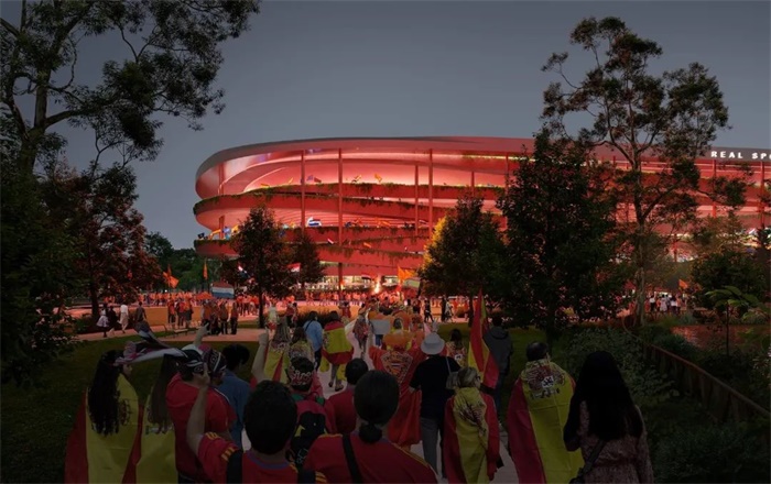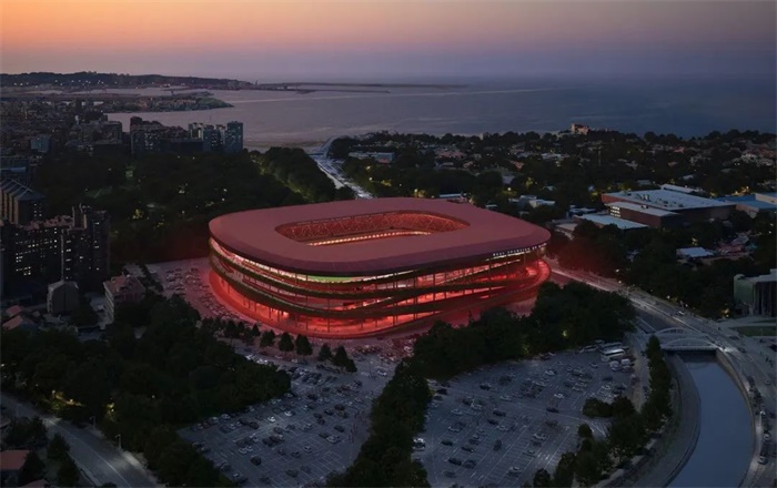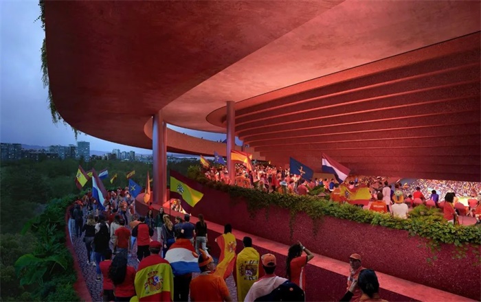 设计侧重于创造半开放空间,将建筑的新旧元素与城市景观完美融合,让人们欣赏城市和海滩的美景。设计团队特别设计了10个带顶的露天循环坡道,环绕体育场外部。这些坡道不仅创造了独特的视觉效果,还突显了球迷在体育场周围活动时对球场身份的重要性。整体效果使其成为该地区引人注目的柔和红色地标。