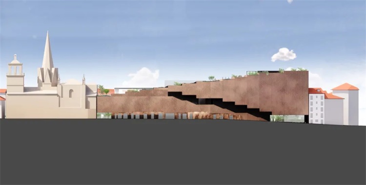 这个庭院区并不是唯一一个被规划为公共空间的区域:由于高度的落差,建筑屋顶将是人人共享、拥有不同城市风光视野的绿色空间。此外,该项目毗邻石桥的战略位置使建筑师考虑与通往洛格罗尼奥的圣雅各之路(Camino de Santiago)建立潜在的协同效应。