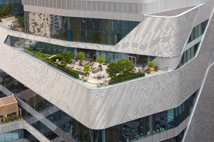 裙楼具有在城市背景中显得格外醒目的外立面,它将提供别致的零售体验。其设计既源于西方和亚洲其他大型购物中心的启发,但又与泰国的文化和语境紧密相连。