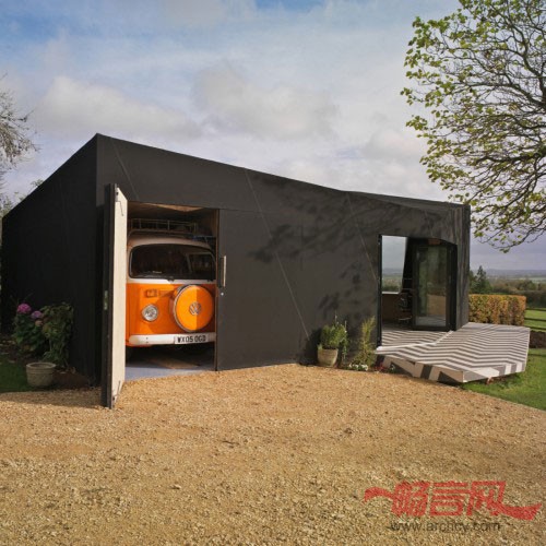 外墙和屋顶上都覆盖着一层黑色橡胶。