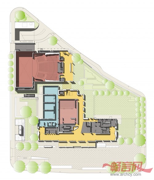 该项目由加利福尼亚卡尔费城的SPF事务所建筑师Zoltan Pali设计。这个新中心要求将比佛利山的古老邮局改造成表演艺术中心和城市文化节目中心。这座始于经济大萧条时期的古老建筑将接受改造,曾经被用作分拣邮件和售卖邮资的空间将被设计成一座集戏剧学校、剧场、雕塑园、咖啡厅和礼品店于一体的综合型建筑。这一设计理念给这座古老的历史性建筑增添了一个能容纳500人的现代化的戈德史密斯剧院。
