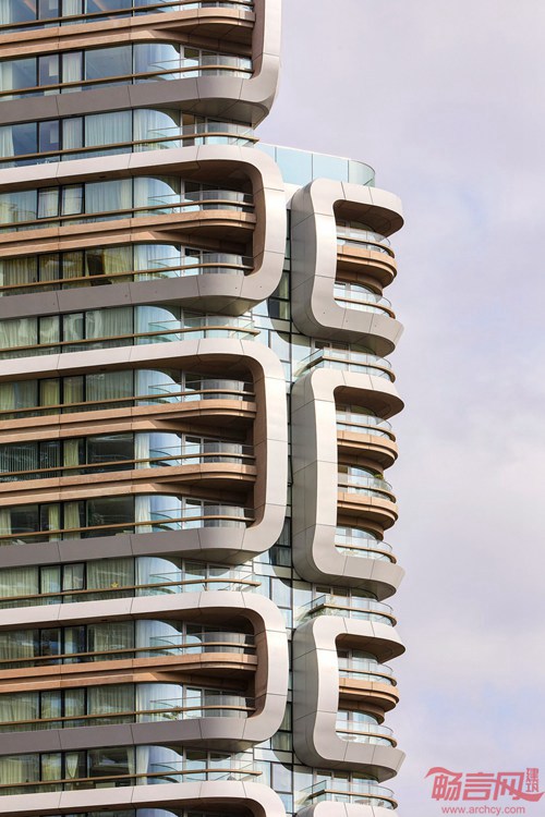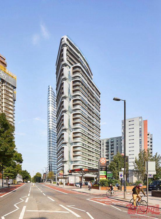 UNStudio设计的伦敦31层的住宅楼位于City Road257号,临近Shoreditch。项目是该道路众多的高层建筑之一,另外还有福斯特设计的City Road 250号, 位于摄政运河City Road内陆河。住宅建筑采用铝金属装饰带和混凝土材料,分隔其不同部分,容纳众多住户单元,住户可欣赏全景视野。设计师Ben van Berkel在带领记者参观建筑时表示,我们不知道发展如此迅速,如此多的高楼建设速度令人惊讶,起初规划时并没有这些大厦。