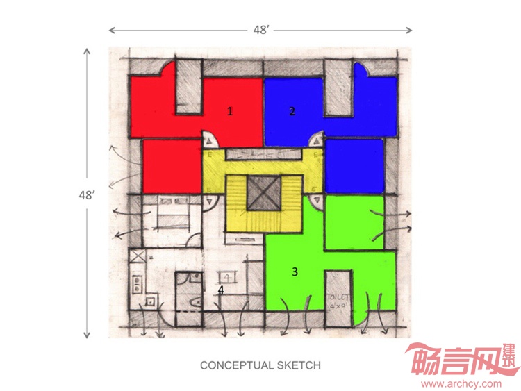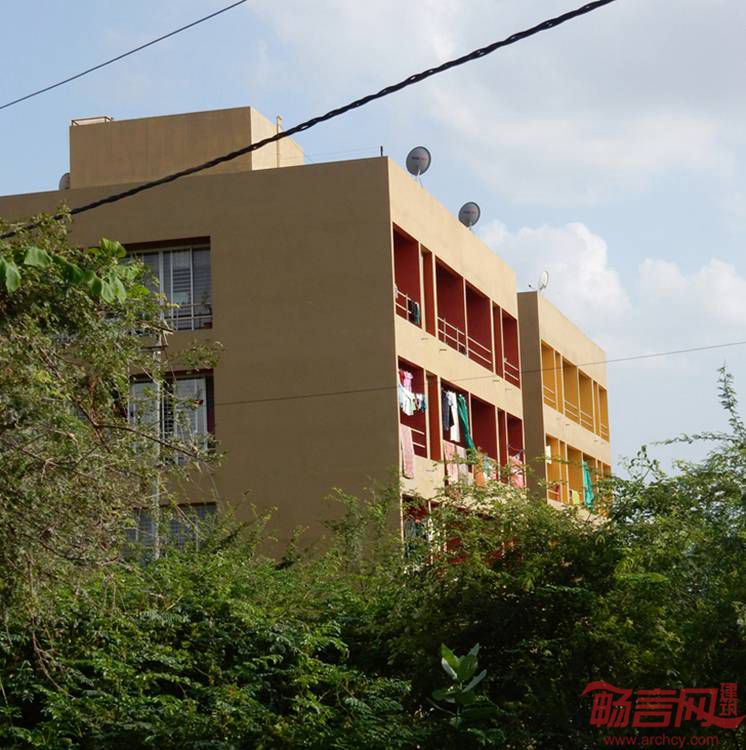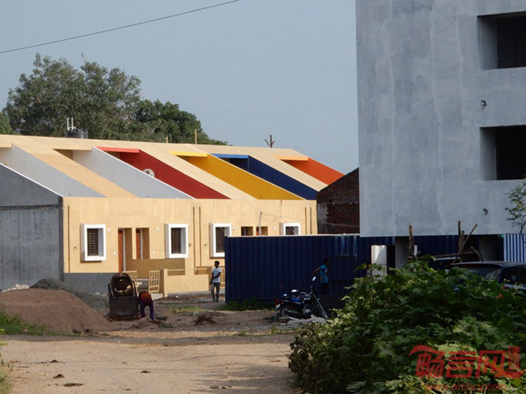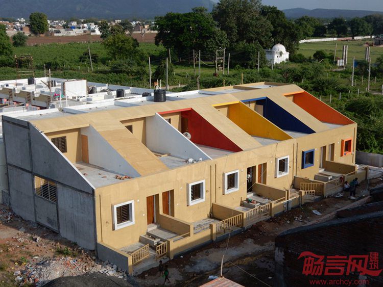 SPACE事务所设计了印度Gujarat保障性住宅。项目利用色彩明亮的建筑体,从周边环境中脱颖而出。开发项目包含一座倾斜的公寓楼以及一排两室独立屋,不同的颜色将相邻建筑区分开。这个项目面向中等收入的家庭,与周边装饰华丽的传统建筑形成对照。项目名为Stanwood住宅,设计师希望超越传统装饰,寻求纯粹的建筑形式。