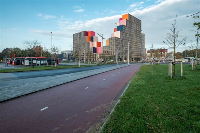 OurDomain学生公寓东南分部,位于阿姆斯特丹由教育机构和学生住宅组成的科教轴线上,激发了该地区崭新的活力。其地理位置优越,紧邻医院和火车站。1500套公寓及配套设施的需求将首个住宅建筑引入主要的办公片区。这个园区将发挥催化剂的作用,促成该地渴求已久的改变,即从单一功能的办公区变成一个活跃的多功能城市片区。OurDomain园区的都市目标是做出改变、产生新的联系、促进激发用户的社交空间。