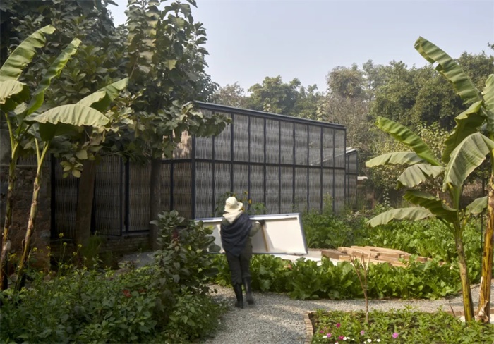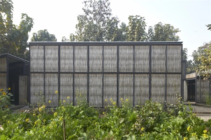 位于新德里 Arjanghar 的艺术家驻地 Farm 8 坐落在一片生机盎然的绿洲中,地处一个人口稠密的城中村内。大约十年前,客户 Ranbir 和 Rashmi Kaleka 打算将该场地用作自己的艺术家工作室。当时地基以及柱子均已浇筑完成,然而不幸的是,由于一些意料之外的原因,现场停止了施工。2020 年,随着需求和生活方式的不断变化,艺术家-客户开始用这座占地 5 英亩的农场进行可持续耕作和实验性生态农业实践,并作为 Farm8 艺术家集体的一部分。