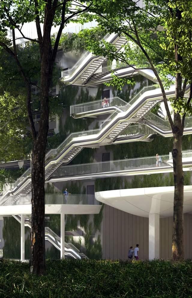 由马岩松领衔的MAD建筑事务所使用植物和抛光金属楼梯为意大利米兰附近的 MoLo 大楼和多层停车场的外部增添活力。