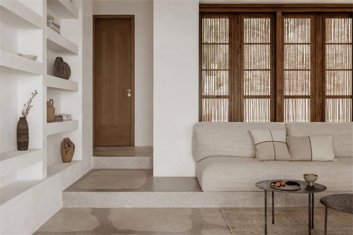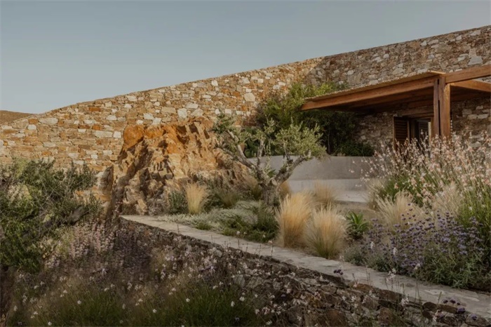 从远处看,Viglostasi 别墅就像一个传统的海岛居民点,位于地中海上方的岩石斜坡上。然而,这只是一座单独的私人度假别墅,坐落在锡罗斯岛(Cycladic Island of Syros)僻静的自然环境中。来自雅典的建筑工作室 Block722 作为项目设计方,巧妙地借鉴了爱琴海小村庄的传统建筑类型:体量低矮且简约的建筑群(它们通常分布在山坡上,面向大海),赋予了这栋别墅独特的个性。