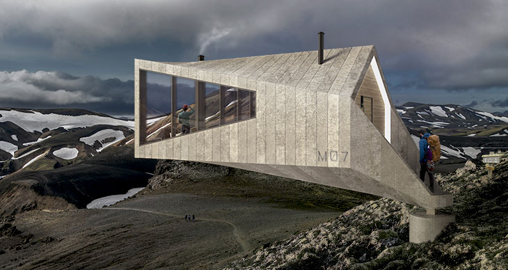 冰岛是地球上一个“极端化”国家‘’——既是世界上最活跃火山地区,也是全欧洲对打冰川所在地。维京人建立了冰岛,这里曾在很长时间内是欧洲最贫困国家。本项目由School Studio公司设计,不仅是旅途中的临时休憩地,也是激发人们观察冰岛环境奇特性的平台。设计重新诠释传统建筑风格和冰岛苔园住宅遗产,木屋将原先的建筑类型转变到另一形式,定义了冰岛现代建筑概念。
