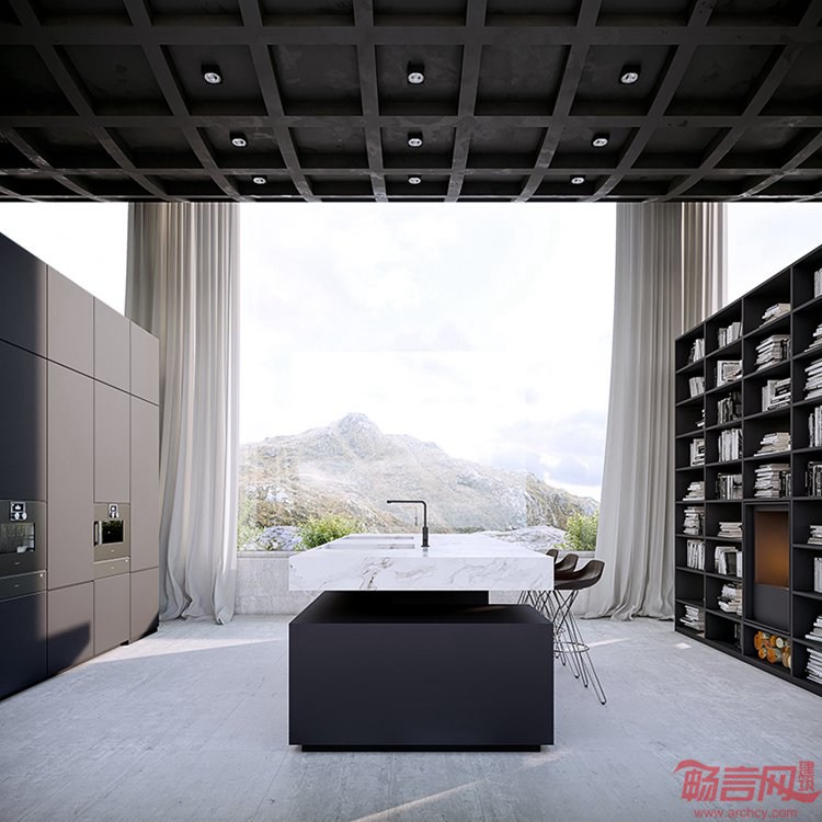 荷兰Vladimir Konovalov事务所设计了位于挪威北部的避暑住宅。项目面积100平米,处于大山深处,为偏爱自然环境中幽静住处的人士而建。这座无限住宅采用原始材料,营造同周边环境的紧密关系。这一建筑包含三大特别元素,户外的混凝土上层建筑,屋顶黑色混凝土泳池,浴室的黑盒子和隐藏楼梯。
