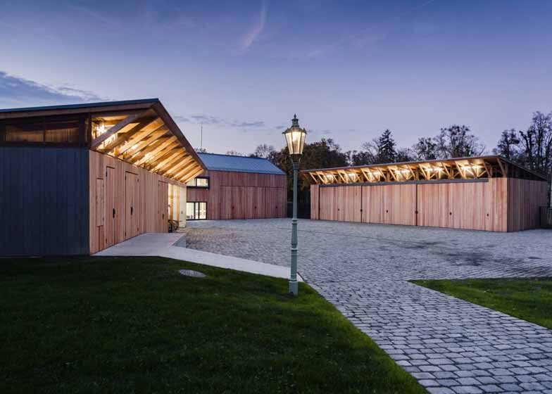 DRNH建筑事务所在捷克共和国一个17世纪庄园一层建造了一座木质建筑。古老的卵石道路通向该建筑,坐落于Kromeriz小城文艺复兴时期的一座庄园。项目是国家花园文化中心的一部分,该教育设施旨在促进捷克全境内历史花园的关注与维护。项目包含三座建筑群,均围绕一座公共庭院而设,分别是存放花园设备的储存空间、园林工人设施,为其他历史花园维护创造了范例。建筑师设计灵感来自当地农业建筑,创造出质朴的木质结构,体现了对于世界文化遗产——Kromeriz庄园的尊重,该庄园曾是大主教的寓所。
