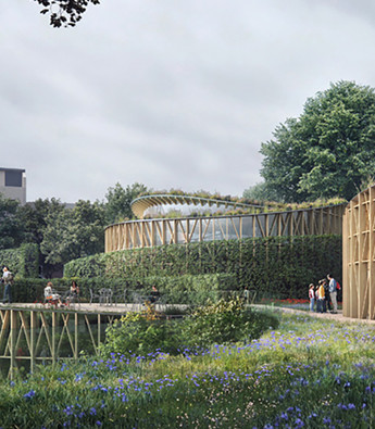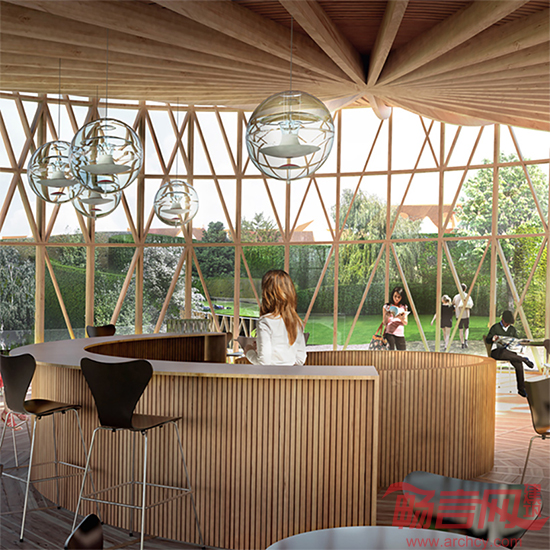项目占地9000平方米,包括一个儿童文化中心,宛若置身于“魔法花园”之中。项目整体绿色盎然,中间有许多弧形的场馆,四周环绕着螺旋状的绿篱笆,仿佛迷宫一样。场馆建筑面积为5600平方米,其中有2/3的楼面在地下,营造一个下沉的童话空间。