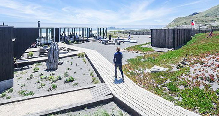 WMR建筑事务所设计了位于智利Navidad的La Lobera休闲中心项目。设计目标是营造用于聚会的空间,使空间场地适合航海、放风筝、玩风帆等运动。建筑所在地气候严酷,疾风凌冽,设计必须符合气候条件。项目达到三个模式,100%封闭,部分敞开,完全敞开。这个滨海度假空间包含一个后院,同时具有遮蔽结构。这里也适合人们进行不在大风中的运动。