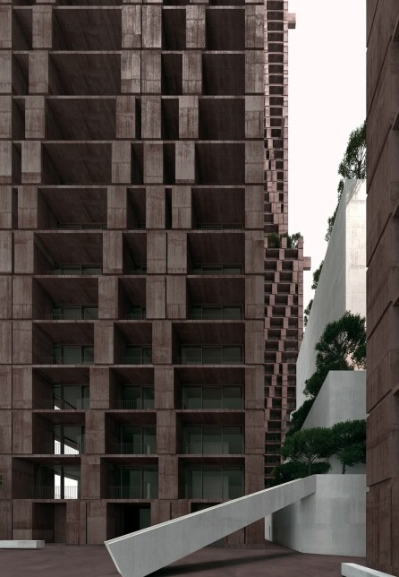 该项目位于阿尔巴尼亚的首都,地拉那。在城市规划层面,项目的理念是让三座塔楼顺应城市的网格布局。地块位于城市街区与公园绿地的交界处。