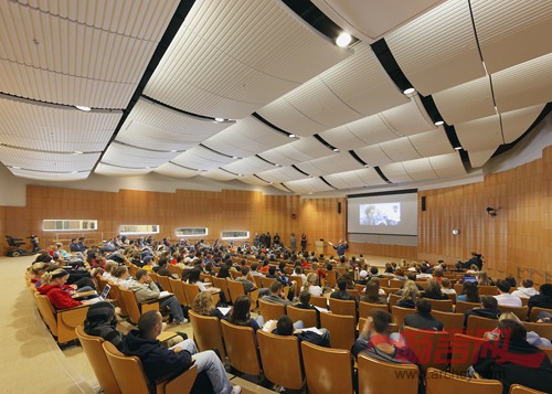 这座庭院布满了阳光和木面涂料,增加了BIF的壮观和温馨感,并且可以作为原商学院的会议场所。这是一个富有活力的教学场所:19间设有40~70个座位的阶梯教室,一座容纳了300个座位的大礼堂,一个模拟交易实验室,和36个分组讨论室。这座建筑体现了商学院的哲学观——成为一个开放、透明、鼓舞人心的商业教育场所。