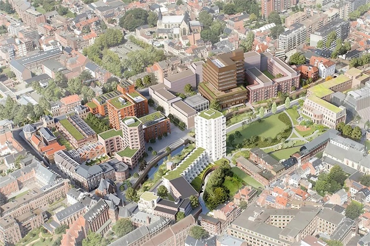 赫托根博斯住宅项目位于布鲁塞尔附近的一座重要大学城中,地处城市中世纪城墙的一片遗址与迪勒河支流之间的一块狭长地带,其独特之处在于它结合了多种住宅类型:一座 14 层高的塔楼、九套联排别墅和一座小型公寓楼,并将它们统一在了一个建筑中。因其位于鲁汶市中心的边缘 ,本项目旨在重新开放该区域并使其重新融入周边城市之中。