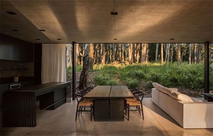 这座由 Gonzalo Bardach Architecture 建筑事务所设计的阿根廷度假屋坐落在布宜诺斯艾利斯海岸的一片针叶林中,将诗意的田园风光具象化呈现在人们面前。该森林度假屋沉浸在当地丰富的原生绿色植物之中,以其内在的开放性和室内外之间的紧密联系为特色,使其成为了一处理想的度假胜地。