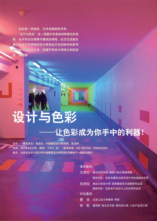 “设计与色彩”这一话题并非是做纯粹理论的说教,也并非仅仅局限于建筑的领域。此次交流意在通过来自不同领域的设计师将自己在实践中的思考和点滴体会拿出来求教于诸师友,挖掘不同设计领域之间的深度“超链接”。