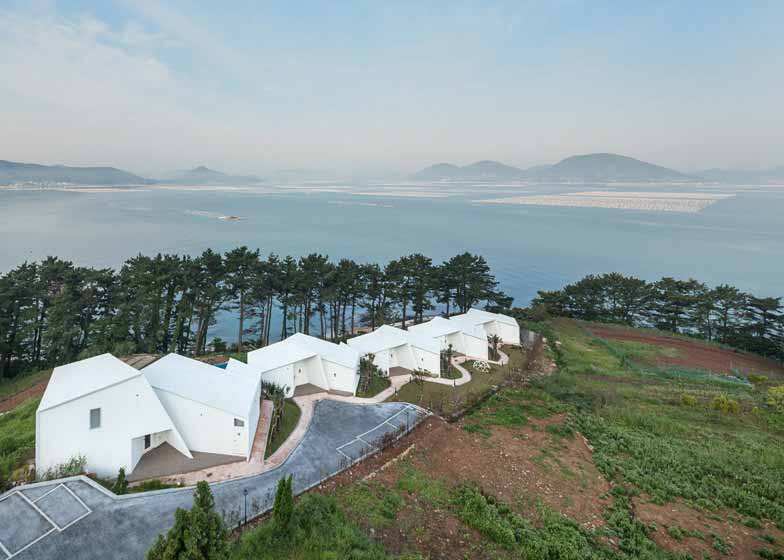 该项目的业主是韩国House of Mind酒店公司,五座建筑沿着坡面场地呈对角线排雷,不会彼此形成遮挡。