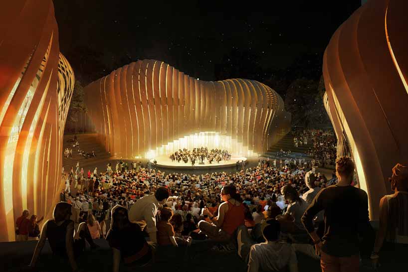 Group8asia公司设计的布达佩斯声景城市公园旨在成为城市居民和游客最为重要的音乐中心和旅游目的地。项目意图超越了博物馆范围,核心性质是文化公共空间。音乐爱好者和过往人群能够聚集一堂,从内而外欣赏这个艺术、休闲、娱乐于一体的中心。项目设计参照了周边环境,构成音乐中心的诗意诠释。该中心不仅是一个具有雕塑特色的场所,同时也将开启开往音乐和谐圣地的旅程。