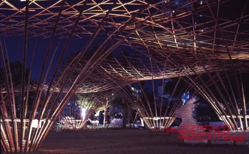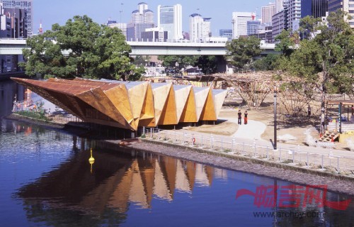 竹林、6幢柯林斯小屋(Collins Huts)和一幢折板小屋(Folded Plate Hut),便是Bunkaza水景文化广场的全部组成部分。这个文化广场是日本大阪的2009水上都市项目的组成部分。