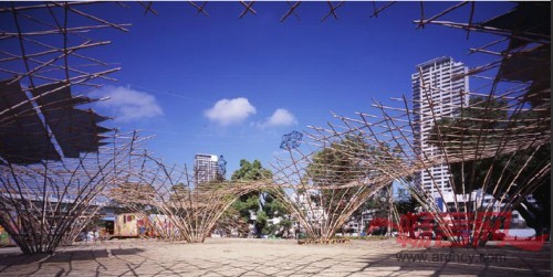 竹林的设计灵感来源于当地Douzima河边的森林。那里的树枝被弯折框架的形状,便于在此处工作的艺术家悬挂自己的艺术作品或者即兴发挥创意。
