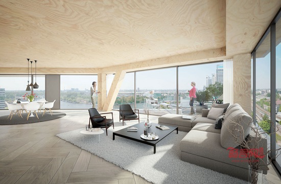 荷兰阿姆斯特丹市政府选定了Team V Architectuur与Lingotto、Nicole Maarsen和ARUP合作设计一座高73米的住宅大楼。大楼选址在阿姆斯特河畔,建成后将成为荷兰最高的木质框架大楼,而且根据建筑计划,该大楼有望角逐世界最高木质大楼。项目预计于2017年下半年开始动工。