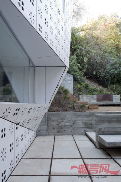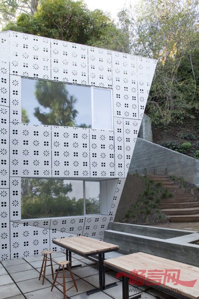 钻石小屋是一项住宅扩建项目,由XTEN Architecture事务所设计。它像一个带花纹的镂空灯笼,照亮了加利福尼亚的峡谷。该项目坐落在一个斜坡上,交通不便且可利用空间很小。
