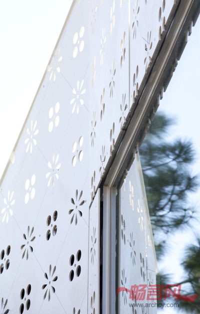 该建筑的几何形状同时遵循了建筑内部的功能安排。一系列的薄壁平板被折叠起来,超出屋顶的部分构成了屋顶围栏。