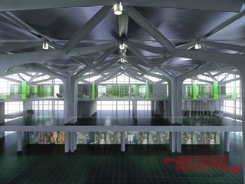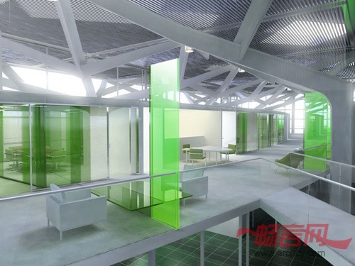 该商务中心平台位于候机楼内,沿机场中庭的墙板建造。通过一座长悬浮桥构成的通道,可以从现有的垂直客流中心区穿过机场的中庭。辅助的楼厅朝向机场的中庭开放,从这里可以进入到每个会议室。为了避免模式化的工作环境,建筑师采用了独特的方式,即通过改变建筑面积和形式来设计和完成每个独立的空间。楼板的下面安装了抛光的不锈钢吊顶,可以反射自然光,让旅客看到后面跑道上的飞机。