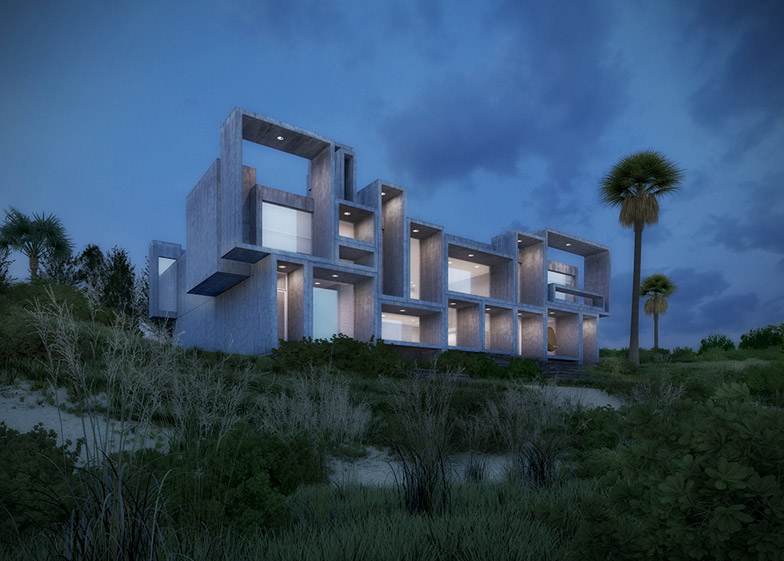 洛杉矶建筑师、视觉艺术家Dan Huh完成了佛罗里达Milam住宅改造图纸。项目原设计师是Paul Rudolph,坐落于Ponte Vedra海滩社区,在1962年初建时引发了轰动效应。项目业主是一位年轻律师,多层住宅的醒目外立面颇具吸引力,包含一系列方正的外框,令人联想起Piet Mondrian的格栅主题画作。