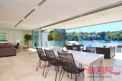 公寓拥有广阔的海景空间,身处其中可以俯瞰悉尼北岸的Mosman海湾,渡轮和游艇从波光闪闪的水域驶过,这给澳大利亚建筑事务所Allen Jack+Cottier提供了风景如画的工作环境。而他们面临的最大挑战是在原有建筑的严格限制下设计新公寓,使这栋公寓的居住者最大限度地观赏到完整的海岸景观,同时又不影响附近建筑里的居民欣赏景致。