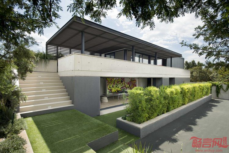 我们许多人都崇敬夏日舒适的度假,能够远离平日杂事烦扰,放松心情,和孩子嬉戏。不过如果平时也能这样,为什么要等上一年?来自南非比勒陀尼亚的一个四口之家在一次晚饭时萌生了这个想法。当时,其隔壁邻居出售房屋,于是业主一家决定扩建花园,并修建网球场和泳池。为了实现这个想法,一家人找到仰慕的建筑师Johan Wentzel,认为以往的项目时髦而清新。不招摇的钢混结构配合落地玻璃门,让室内外无缝结合。