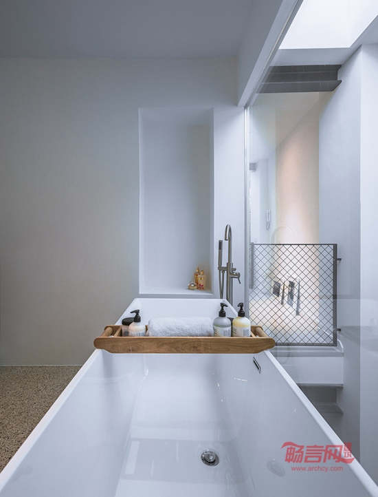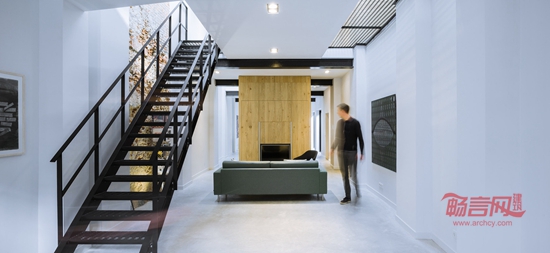 由于这座房子纵深长达20米,而且只有前后两部分可以有光线透入,因此整体的自然采光成了最大的问题。业主明确要求希望改造成一个宽敞的居住空间。为了使自然光线能够穿透整座房子,设计师采用了许多的孔洞。