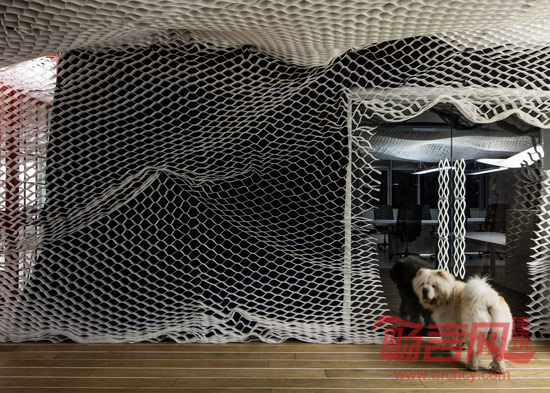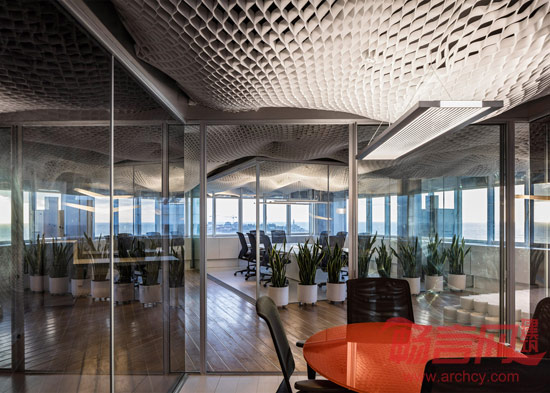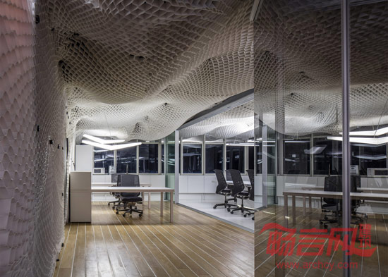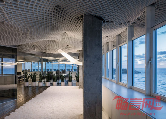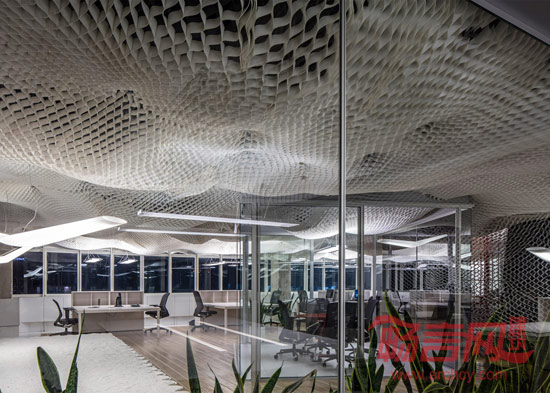 Paritzki & Liani建筑事务所完成了以色列特拉维夫市一家工程公司办公室的室内设计,独特之处是采用该公司标志性的产品打造了一套云朵状的天花板。