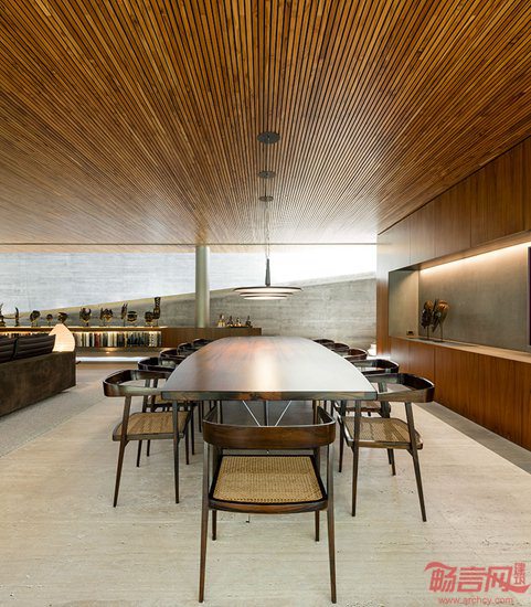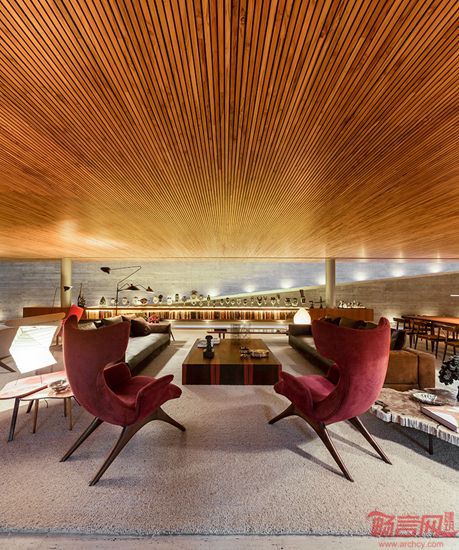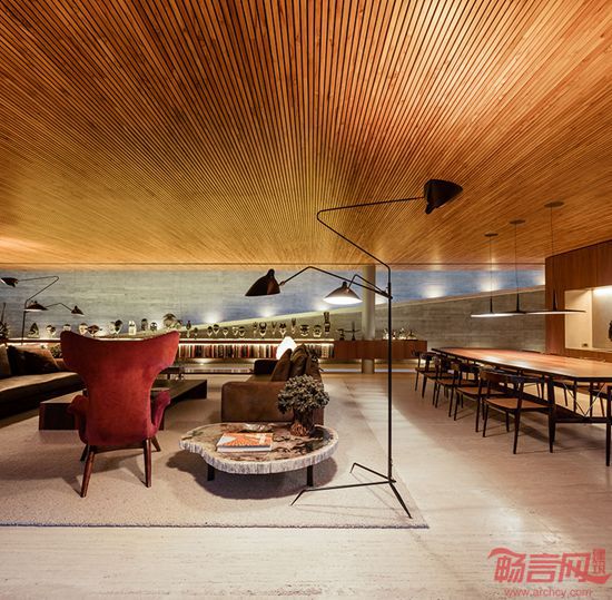 MK27工作室设计了巴西圣保罗Ramp住宅。项目特点是拥有25米的斜坡。坡面走道连接一层起居室和二层卧室。这一斜度造就了设计师所称的“建筑通道”,让附近的空间呈现在不同的视角中。房屋业主后期希望将住宅改造成文化基金会,并随之改造住宅布局。社交空间展现了展览样式的工艺品,例如位置精细布置的非洲面具。